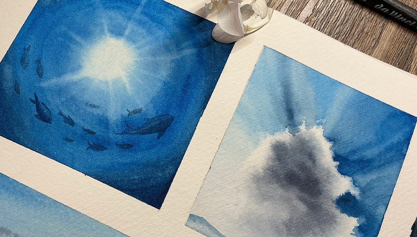 Superpositions légères, gestion de l’eau, douceur des dégradés… des exercices à la fois techniques et sensibles.