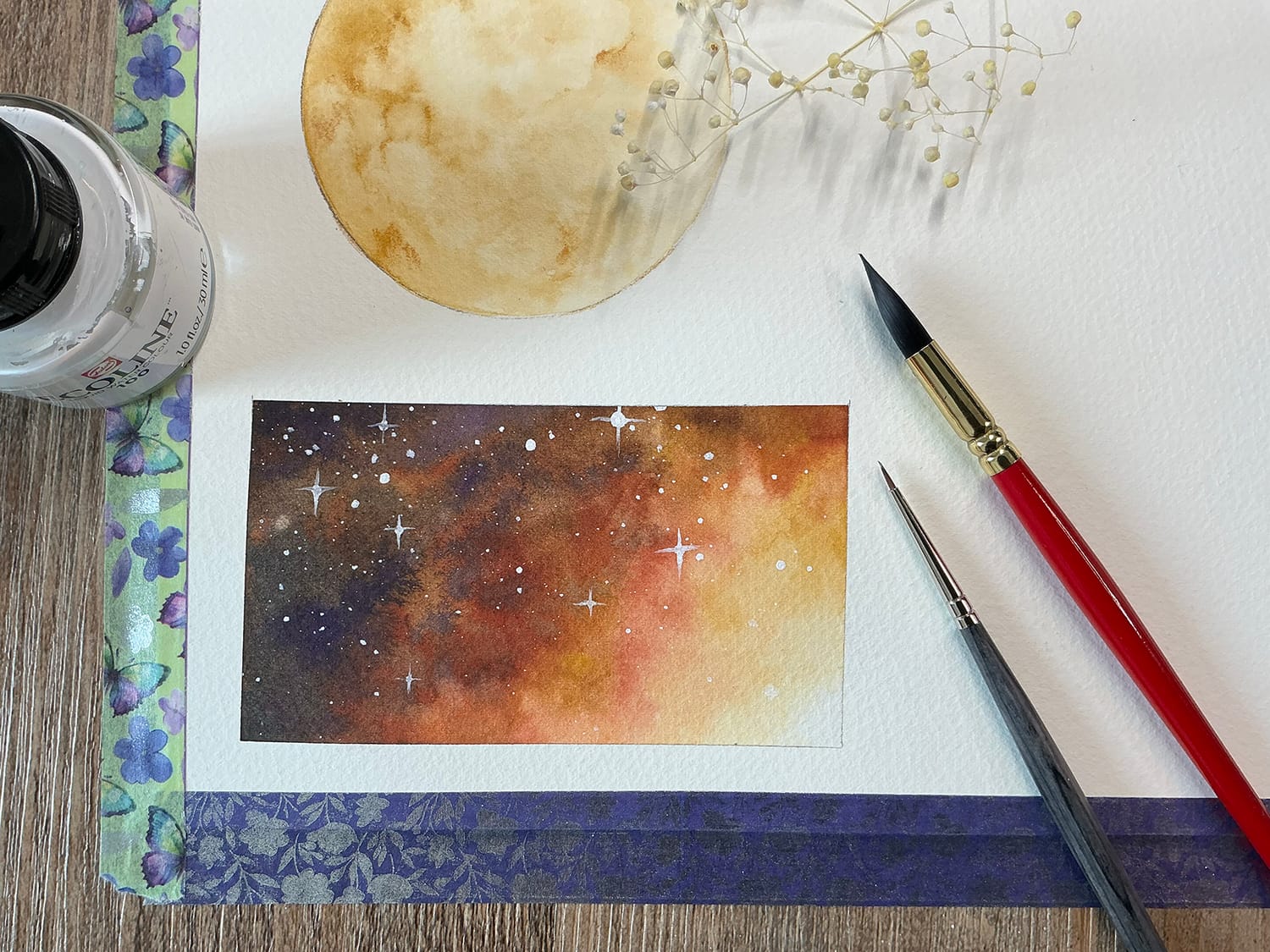 Observer la fusion des pigments, comprendre la circulation de l’eau, apprendre à créer une galaxie, un ciel magique et des paysages simples, tout en douceur.