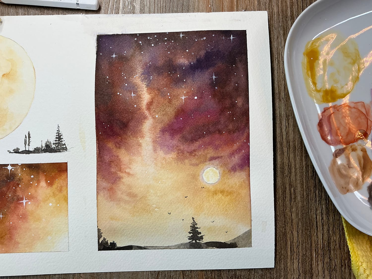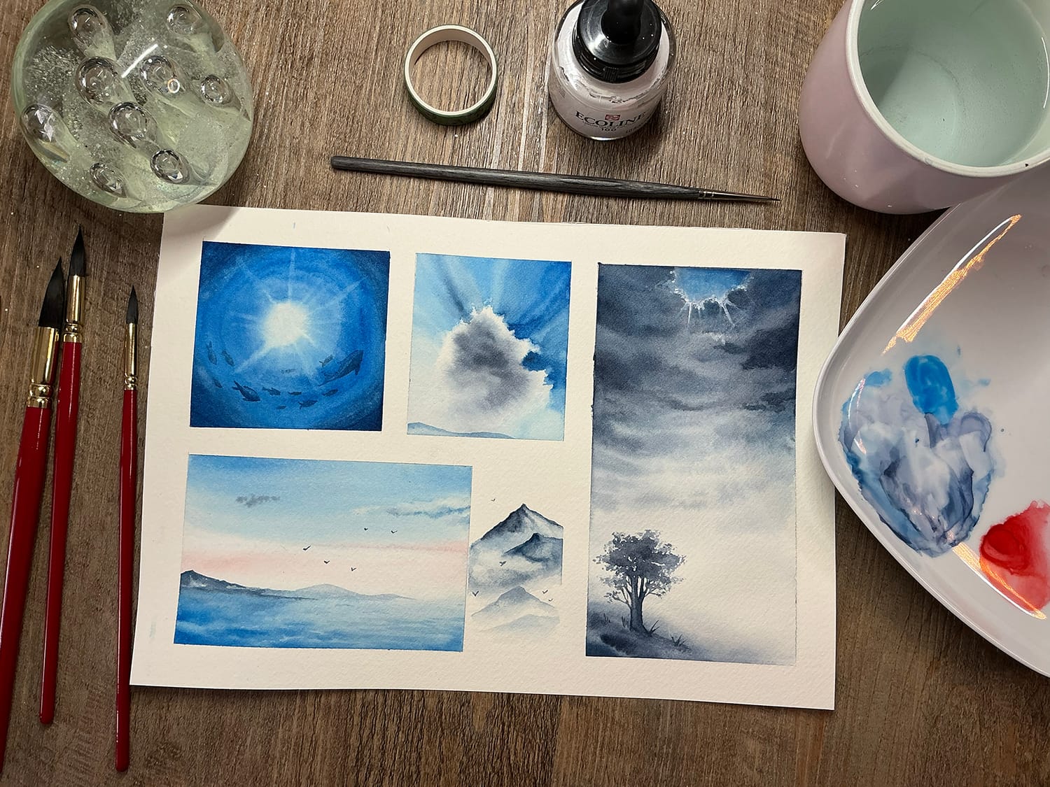 Ces techniques prendront vie au travers de petites aquarelles poétique.